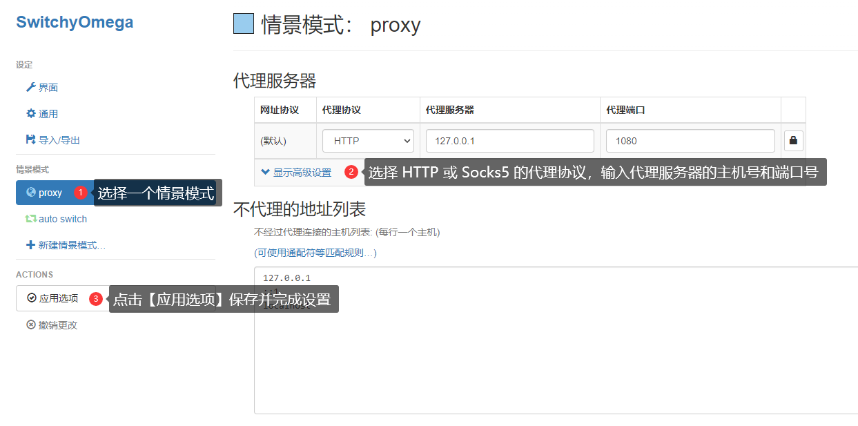 步骤一:选择一个情景模式【proxy】;