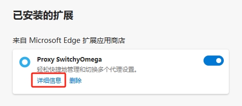 2、找到拓展程序“SwitchyOmega” ,点击“详细信息”。