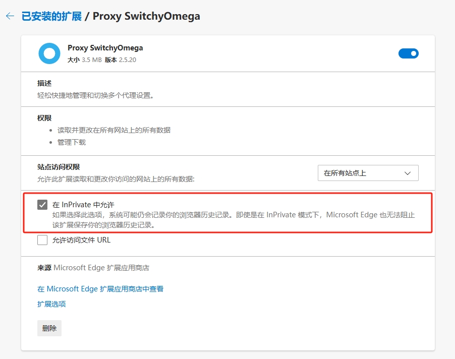 4、打开 InPrivate 窗口,即可正常使用“SwitchyOmega”配置代理。
